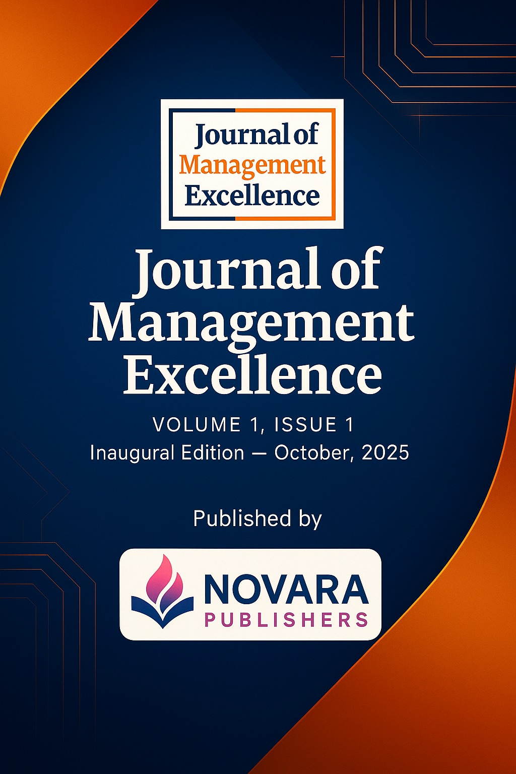 The Journal of Management Excellence (JME) is an international, peer-reviewed, open-access journal published by NOVARA PUBLISHERS. JME provides a scholarly platform for researchers, academicians, professionals, and industry experts to present innovative research, theoretical advancements, and practical insights in all major areas of management. The journal is committed to disseminating high-quality, original research that contributes to global academic and industrial development.